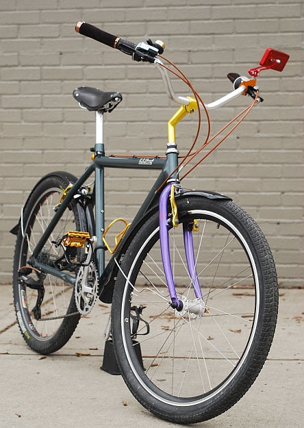 If you look closely you can see the metamorphosis going on as we decided what do do with this 1980s Cannondale mountain bike that was licensed by LL Bean, the clothing company that targeted wealthy yuppies who liked to play pretend-camping, but not roam too far from their Hamptons summer house.